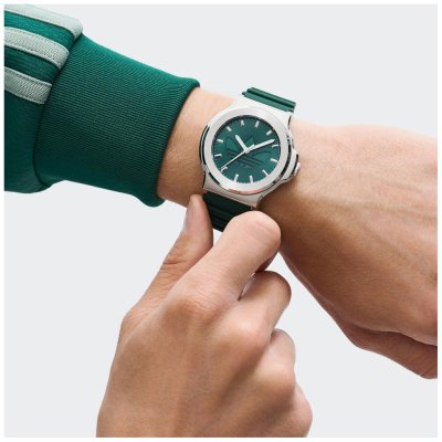 Diese Adidas Uhr hat ein Edelstahl Gehäuse mit einem Durchmesser von 41 mm und ist mit einem Armband aus Kautschuk versehen. In der Uhr arbeitet ein Timex Uhrwerk. Das Glas der Uhr besteht aus Mineral - Glas.