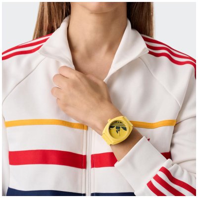 Diese Adidas Uhr hat ein Bioceramic Gehäuse mit einem Durchmesser von 44 mm und ist mit einem Armband aus Bio-Kunststoff versehen. In der Uhr arbeitet ein Timex Uhrwerk. Das Glas der Uhr besteht aus Mineral - Glas.