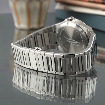 Diese Aerowatch Uhr hat ein Edelstahl Gehäuse mit einem Durchmesser von 41 mm und ist mit einem Armband aus Edelstahl versehen. In der Uhr arbeitet ein Ronda Uhrwerk. Das Glas der Uhr besteht aus Sapphir - Glas.