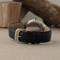 Diese Aerowatch Uhr hat ein Edelstahl Gehäuse mit einem Durchmesser von 32 mm und ist mit einem Armband aus Leder versehen. In der Uhr arbeitet ein Ronda Uhrwerk. Das Glas der Uhr besteht aus Sapphir - Glas.