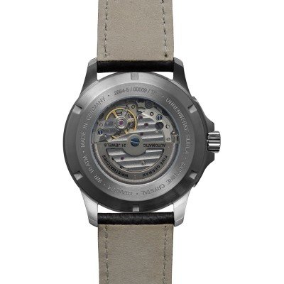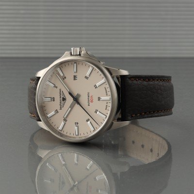 Diese Bauhaus Uhr hat ein Titan Gehäuse mit einem Durchmesser von 42 mm und ist mit einem Armband aus Leder versehen. In der Uhr arbeitet ein Miyota Uhrwerk. Das Glas der Uhr besteht aus Sapphir - Glas.