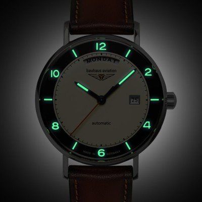 Diese Bauhaus Uhr hat ein Edelstahl Gehäuse mit einem Durchmesser von 41 mm und ist mit einem Armband aus Leder versehen. In der Uhr arbeitet ein Miyota Uhrwerk. Das Glas der Uhr besteht aus K1 Mineral - Glas.