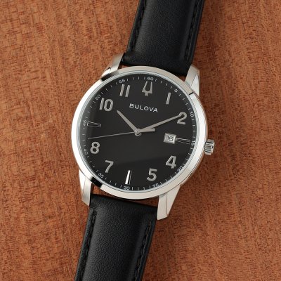 Diese Bulova Uhr hat ein Edelstahl Gehäuse mit einem Durchmesser von 40 mm und ist mit einem Armband aus Leder versehen. In der Uhr arbeitet ein Miyota Uhrwerk. Das Glas der Uhr besteht aus Mineral - Glas.