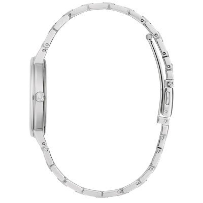 Diese Bulova Uhr hat ein Edelstahl Gehäuse mit einem Durchmesser von 32 mm und ist mit einem Armband aus Edelstahl versehen. In der Uhr arbeitet ein Miyota Uhrwerk. Das Glas der Uhr besteht aus Mineral - Glas.