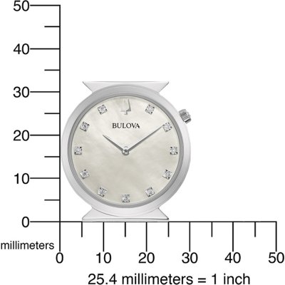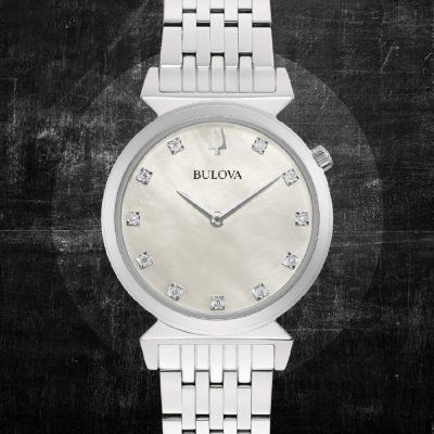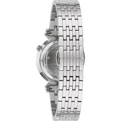 Diese Bulova Uhr hat ein Edelstahl Gehäuse mit einem Durchmesser von 30 mm und ist mit einem Armband aus Edelstahl versehen. In der Uhr arbeitet ein Miyota Uhrwerk. Das Glas der Uhr besteht aus Sapphir - Glas.