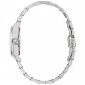 Diese Bulova Uhr hat ein Edelstahl Gehäuse mit einem Durchmesser von 29 mm und ist mit einem Armband aus Edelstahl versehen. In der Uhr arbeitet ein Miyota Uhrwerk. Das Glas der Uhr besteht aus Mineral - Glas.