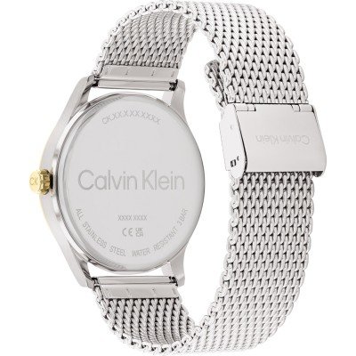 Diese Calvin Klein Uhr hat ein Edelstahl Gehäuse mit einem Durchmesser von 43 mm und ist mit einem Armband aus Edelstahl versehen. In der Uhr arbeitet ein Miyota Uhrwerk. Das Glas der Uhr besteht aus Mineral - Glas.
