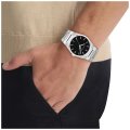 Diese Calvin Klein Uhr hat ein Edelstahl Gehäuse mit einem Durchmesser von 40 mm und ist mit einem Armband aus Edelstahl versehen. In der Uhr arbeitet ein Seiko Instruments Inc. Uhrwerk. Das Glas der Uhr besteht aus Mineral - Glas.