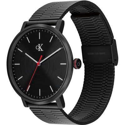 Diese Calvin Klein Uhr hat ein Edelstahl Gehäuse mit einem Durchmesser von 42 mm und ist mit einem Armband aus Edelstahl versehen. In der Uhr arbeitet ein Seiko Instruments Inc. Uhrwerk. Das Glas der Uhr besteht aus Mineral - Glas.