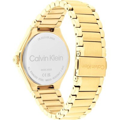 Diese Calvin Klein Uhr hat ein Edelstahl Gehäuse mit einem Durchmesser von 38 mm und ist mit einem Armband aus Edelstahl versehen. In der Uhr arbeitet ein Seiko Instruments Inc. Uhrwerk. Das Glas der Uhr besteht aus Mineral - Glas.