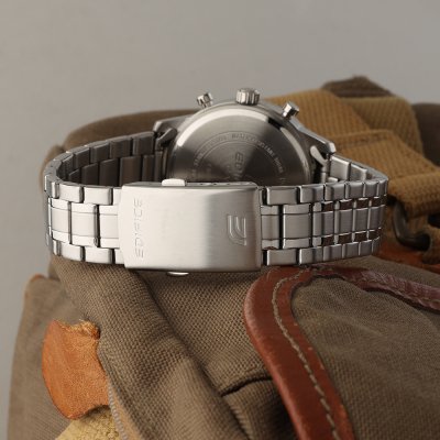Diese Casio Edifice Uhr hat ein Edelstahl Gehäuse mit einem Durchmesser von 41 mm und ist mit einem Armband aus Edelstahl versehen. In der Uhr arbeitet ein Casio Uhrwerk. Das Glas der Uhr besteht aus Mineral - Glas.
