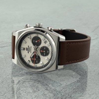 Diese Casio Edifice Uhr hat ein Edelstahl Gehäuse mit einem Durchmesser von 40 mm und ist mit einem Armband aus Leder versehen. In der Uhr arbeitet ein Casio Uhrwerk. Das Glas der Uhr besteht aus Sapphir - Glas.