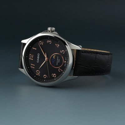 Diese Casio Uhr hat ein Edelstahl Gehäuse mit einem Durchmesser von 42.5 mm und ist mit einem Armband aus Leder versehen. In der Uhr arbeitet ein Casio Uhrwerk. Das Glas der Uhr besteht aus Mineral - Glas.