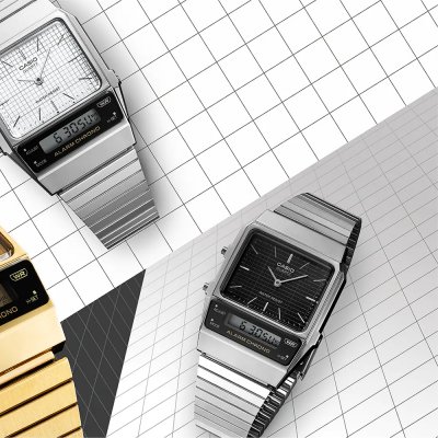 Diese Casio Uhr hat ein Kunststoff / Harz Gehäuse mit einem Durchmesser von 32.1 mm und ist mit einem Armband aus Edelstahl versehen. In der Uhr arbeitet ein Casio Uhrwerk. Das Glas der Uhr besteht aus Acryl - Glas.
