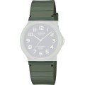 Dieses Casio Uhrarmband ist aus kunstharz gefertigt und wird mit stahlstifte an der Uhr befestigt. Das Band hat eine Breite von 19 mm und wird mit einer dornschließe geschlossen. Das Uhrenarmband hat keine gerade Halterung, was bedeutet, dass dieses Band nur für die unten aufgeführten Uhren geeignet ist.