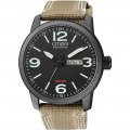 Diese Citizen Uhr hat ein Edelstahl Gehäuse mit einem Durchmesser von 42 mm und ist mit einem Armband aus Textil auf Leder versehen. In der Uhr arbeitet ein Citizen Uhrwerk. Das Glas der Uhr besteht aus Mineral - Glas.