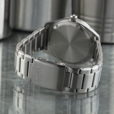 Diese Citizen Uhr hat ein Edelstahl Gehäuse mit einem Durchmesser von 43 mm und ist mit einem Armband aus Edelstahl versehen. In der Uhr arbeitet ein Citizen Uhrwerk. Das Glas der Uhr besteht aus Mineral - Glas.