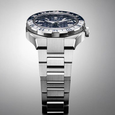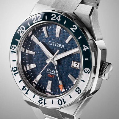 Dieses jüngste Mitglied der Serie 8 verfügt über ein neu entwickeltes mechanisches Kal. 9054 mit einem 24-Stunden-GMT-Zeiger, der Ihre Heimatzeit oder die zweite Zeitzone anzeigt, auf die Sie sie einstellen möchten. Das hochpräzise und antimagnetische Uhrwerk verfügt über eine Gangreserve von 50 Stunden. Diese neue GMT-Uhr hat eine sportliche Ästhetik und ein blau kariertes Zifferblattmuster, das Wohlstand symbolisieren soll, sowie ein beliebtes Tokioter Design, das von Architekturfenstern inspiriert ist. Das konisch zulaufende Edelstahlarmband wurde mit einer rauen Haarlinie auf einer flachen Oberfläche gebürstet, um ein modernes, luxuriöses Aussehen und einen bequemen Sitz zu gewährleisten.