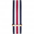 Dieses Daniel Wellington Uhrarmband ist aus textil gefertigt und wird mit druckstifte an der Uhr befestigt. Das Band hat eine Breite von 20 mm und wird mit einer dornschließe geschlossen. Das Band hat eine gerade Halterung, was bedeutet, dass dieses Band für alle Daniel Wellingtonuhren mit einer geraden Halterung geeignet ist.