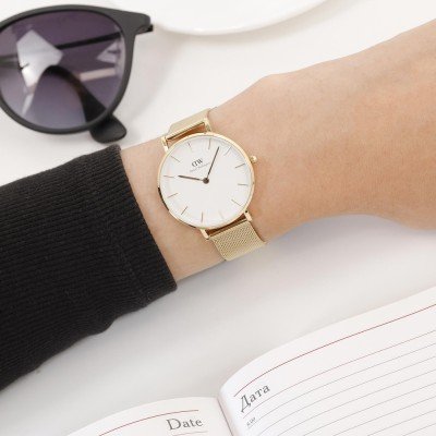 Diese Daniel Wellington Uhr hat ein Edelstahl Gehäuse mit einem Durchmesser von 32 mm und ist mit einem Armband aus Edelstahl versehen. In der Uhr arbeitet ein Miyota Uhrwerk. Das Glas der Uhr besteht aus Mineral - Glas.