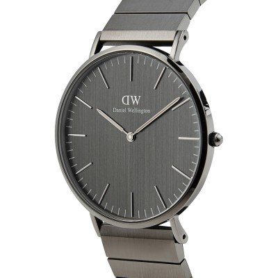 Diese Daniel Wellington Uhr hat ein Edelstahl Gehäuse mit einem Durchmesser von 40 mm und ist mit einem Armband aus Edelstahl versehen.