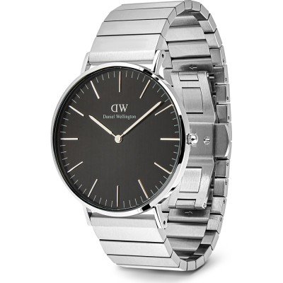 Diese Daniel Wellington Uhr hat ein Edelstahl Gehäuse mit einem Durchmesser von 40 mm und ist mit einem Armband aus Edelstahl versehen.
