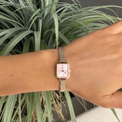 Diese Daniel Wellington Uhr hat ein Edelstahl Gehäuse mit einem Durchmesser von 15 mm und ist mit einem Armband aus Edelstahl versehen.