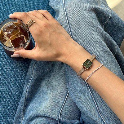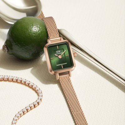 Diese Daniel Wellington Uhr hat ein Edelstahl Gehäuse mit einem Durchmesser von 15 mm und ist mit einem Armband aus Edelstahl versehen.
