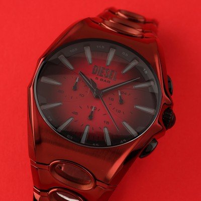 Diese Diesel Uhr hat ein Edelstahl Gehäuse mit einem Durchmesser von 48 mm und ist mit einem Armband aus Edelstahl versehen. In der Uhr arbeitet ein Seiko Instruments Inc. Uhrwerk. Das Glas der Uhr besteht aus Mineral - Glas.
