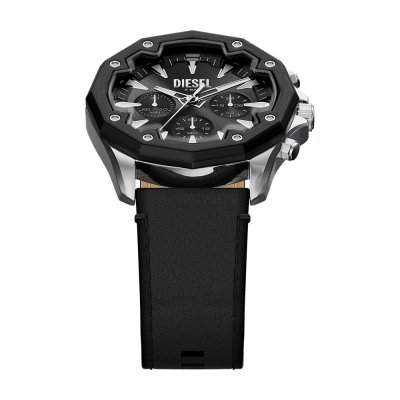 Diese Diesel Uhr hat ein Edelstahl Gehäuse mit einem Durchmesser von 46 mm und ist mit einem Armband aus Leder versehen. In der Uhr arbeitet ein Seiko Instruments Inc. Uhrwerk. Das Glas der Uhr besteht aus Mineral - Glas.