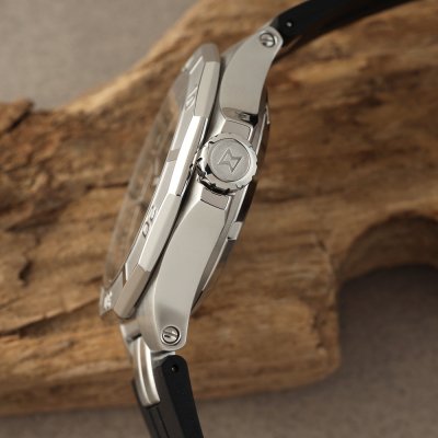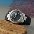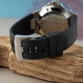 Diese Edox Uhr hat ein Edelstahl Gehäuse mit einem Durchmesser von 43 mm und ist mit einem Armband aus Kautschuk versehen. In der Uhr arbeitet ein Sellita Uhrwerk. Das Glas der Uhr besteht aus Sapphir - Glas.