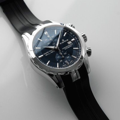 Die Uhrenserie Grand Ocean bleibt ihrer Herkunft aus dem Segelsport treu und verfügt über eine beeindruckende Wasserdichtigkeit von 30 ATM, ein automatisches Chronographenwerk und eine Innenlünette mit Tachymeterskala. Ein weiteres auffälliges Merkmal ist der rosafarbene Gehäuseboden mit Sichtfenster auf das Uhrwerk. Das bequeme Kautschukarmband mit Schmetterlingsschließe schmiegt sich eng an das "dreifache" Horngehäuse. Dieses unverwechselbare Designmerkmal, das von der Nautik inspiriert ist, sorgt für einen sicheren und ergonomischen Sitz und verleiht der Uhr ein unverwechselbares Aussehen.