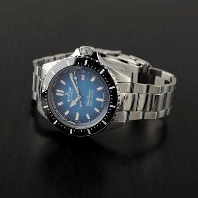 Der Spitzname von Edox lautet schon seit langem "der Wasser-Champion". In diesem Sinne wurde die Skydiver Neptunian Serie entwickelt. Sie ist die ultimative klassische Taucheruhr mit einer erstaunlichen Wasserdichtigkeit von 1000 m! Sie ist eine komfortable, moderne Uhr mit einem Swiss Made Automatikwerk Edox Cal. 80 (basierend auf dem Sellita SW200), Saphirglas mit einer AR-Beschichtung und erhältlich mit Kautschuk- oder Stahlarmband und in verschiedenen Farben. Auf dem Gehäuseboden ist der römische Meeresgott Neptunus eingeprägt, was die außergewöhnliche Tauchtauglichkeit der Skydiver Neptunian zusätzlich unterstreicht.