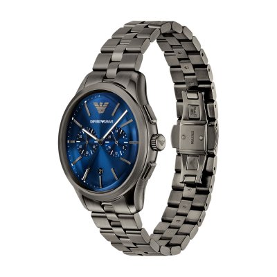 Diese Emporio Armani Uhr hat ein Edelstahl Gehäuse mit einem Durchmesser von 41 mm und ist mit einem Armband aus Edelstahl versehen. In der Uhr arbeitet ein Miyota Uhrwerk. Das Glas der Uhr besteht aus Mineral - Glas.