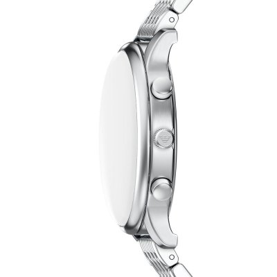 Diese Emporio Armani Uhr hat ein Edelstahl Gehäuse mit einem Durchmesser von 42 mm und ist mit einem Armband aus Edelstahl versehen. In der Uhr arbeitet ein Miyota Uhrwerk. Das Glas der Uhr besteht aus Mineral - Glas.