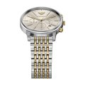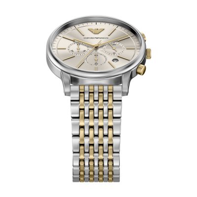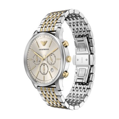 Diese Emporio Armani Uhr hat ein Edelstahl Gehäuse mit einem Durchmesser von 42 mm und ist mit einem Armband aus Edelstahl versehen. In der Uhr arbeitet ein Miyota Uhrwerk. Das Glas der Uhr besteht aus Mineral - Glas.