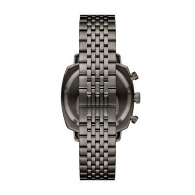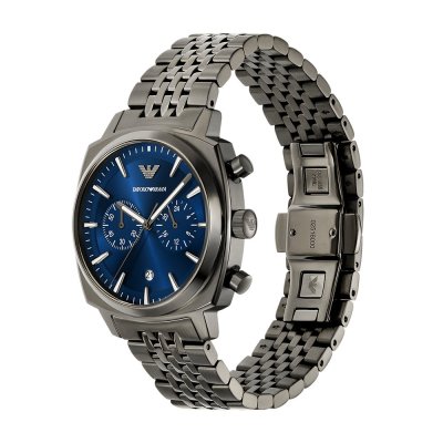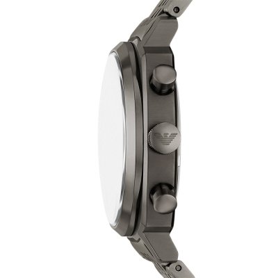 Diese Emporio Armani Uhr hat ein Edelstahl Gehäuse mit einem Durchmesser von 40 mm und ist mit einem Armband aus Edelstahl versehen. In der Uhr arbeitet ein Miyota Uhrwerk. Das Glas der Uhr besteht aus Mineral - Glas.