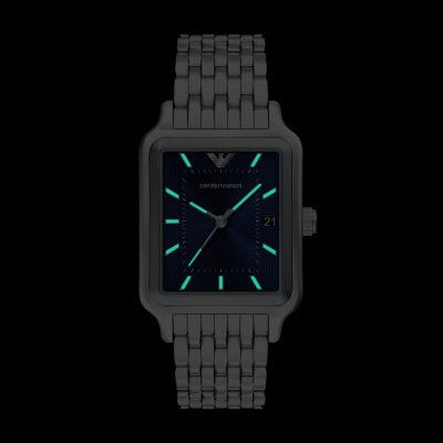 Diese Emporio Armani Uhr hat ein Edelstahl Gehäuse mit einem Durchmesser von 32 mm und ist mit einem Armband aus Edelstahl versehen. In der Uhr arbeitet ein Miyota Uhrwerk. Das Glas der Uhr besteht aus Mineral - Glas.