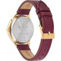 This Adidas watch has a case made of stainless steel with a diameter of 36 mm and is fitted with a leather band. Inside the case lies a Timex movement and the watch features a Mineral crystal.