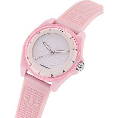 This Adidas watch has a case made of Resin with a diameter of 41 mm and is fitted with a Resin band. Inside the case lies a Timex movement and the watch features a Acrylic crystal.