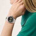 This Aston Martin watch has a case made of stainless steel with a diameter of 42 mm and is fitted with a stainless steel band. Inside the case lies a Timex movement and the watch features a Mineral crystal.