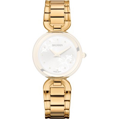 This Balmain watch strap is made of stainless steel and is attached to the watch by means of pin and tube. The band has a width of 14.5 mm and is closed by means of a butterfly clasp with push buttons. The strap has no straight mount which means that this strap is only suitable for the watches listed below.