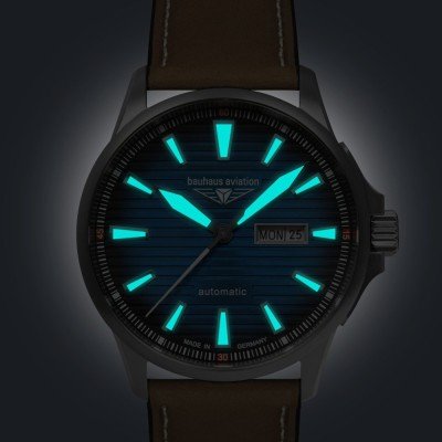 This Bauhaus watch has a case made of titanium with a diameter of 42 mm and is fitted with a leather band. Inside the case lies a Miyota movement and the watch features a Sapphire crystal.