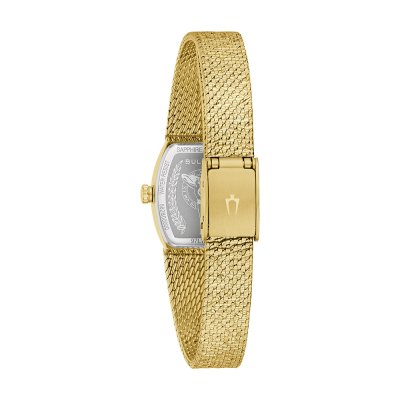 This Bulova watch has a case made of stainless steel with a diameter of 17 mm and is fitted with a stainless steel band. Inside the case lies a Miyota movement and the watch features a Sapphire crystal.