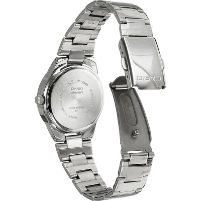 This Casio watch has a case made of stainless steel with a diameter of 31 mm and is fitted with a stainless steel band. Inside the case lies a Casio movement and the watch features a Mineral crystal.