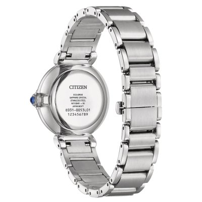 This Citizen watch has a case made of stainless steel with a diameter of 29.5 mm and is fitted with a stainless steel band. Inside the case lies a Citizen movement and the watch features a Sapphire crystal.