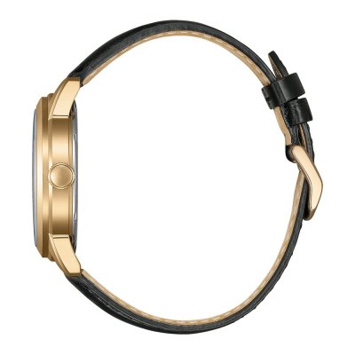This Citizen watch has a case made of stainless steel with a diameter of 40.5 mm and is fitted with a leather band. Inside the case lies a Miyota movement and the watch features a Mineral crystal.