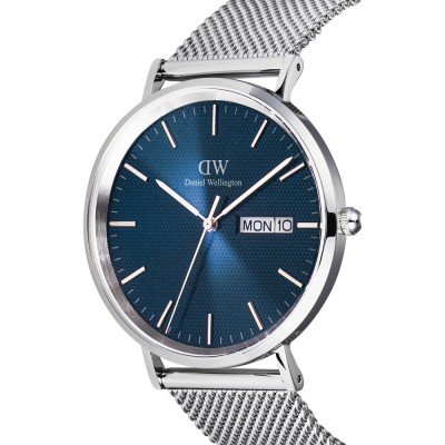 This Daniel Wellington watch has a case made of stainless steel with a diameter of 40 mm and is fitted with a stainless steel band.