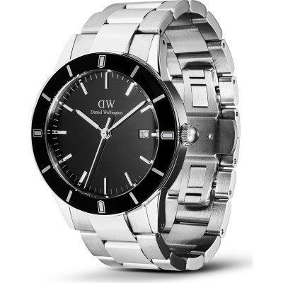 This Daniel Wellington watch has a case made of stainless steel with a diameter of 40 mm and is fitted with a stainless steel band.