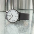 This Danish Design watch has a case made of stainless steel with a diameter of 39 mm and is fitted with a leather band. Inside the case lies a Ronda movement and the watch features a Mineral crystal.